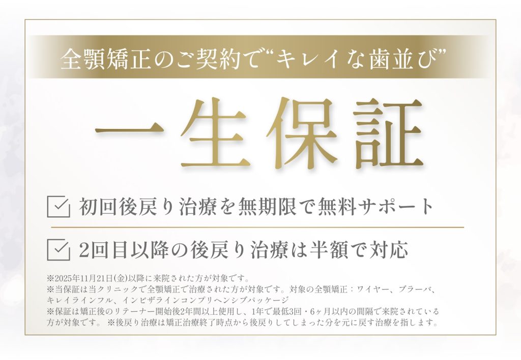 DDデンタルクリニックグループでは、治療後も安心して過ごしていただけるよう、後戻り治療に対するサポート制度を設けています。